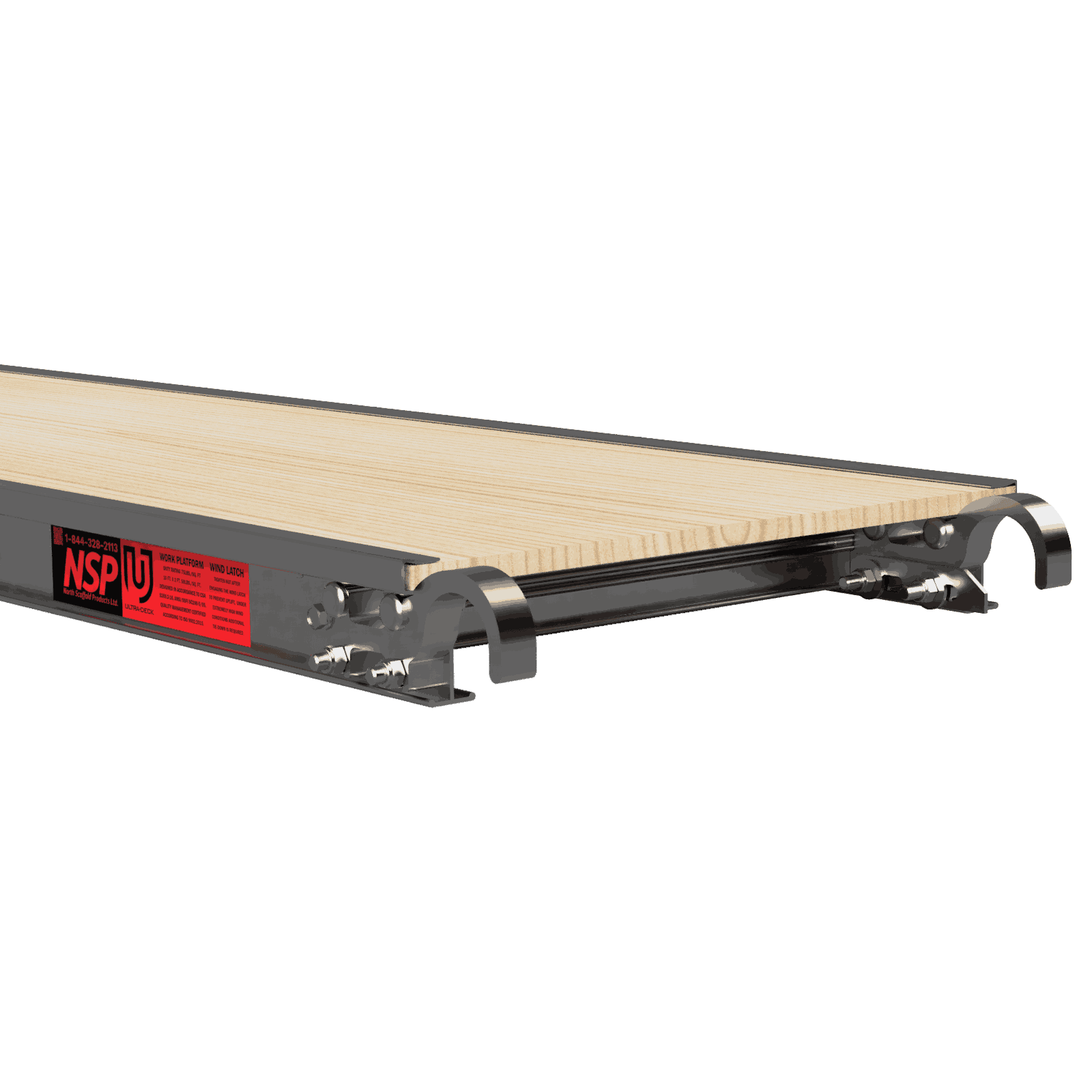 All Aluminum Plywood Scaffold Decks are manufactured using high tensile, corrosion resistant aluminum, and feature a corrugated work surface to increase traction. The wind latch securing system prevents uplift.
