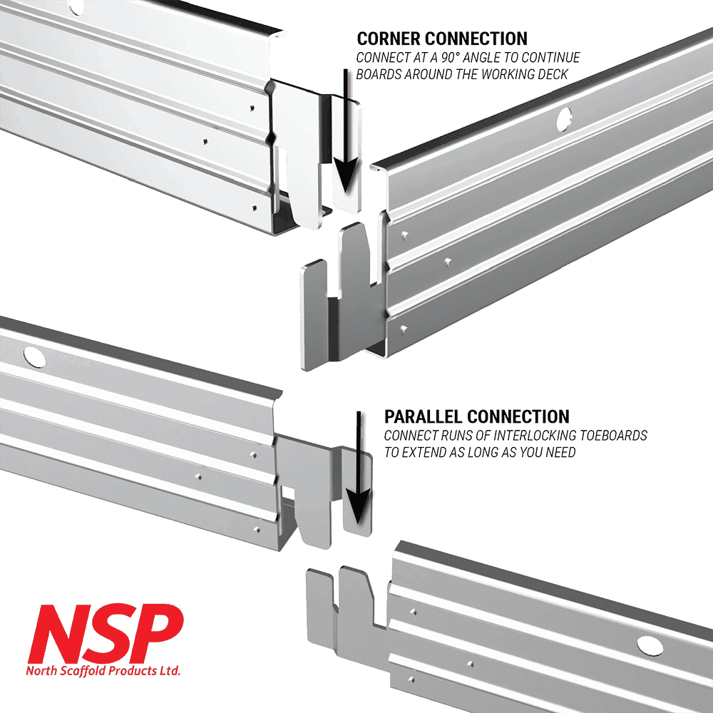 Interlocking Toeboards are compatible with the Ring System and Frame System assemblies.