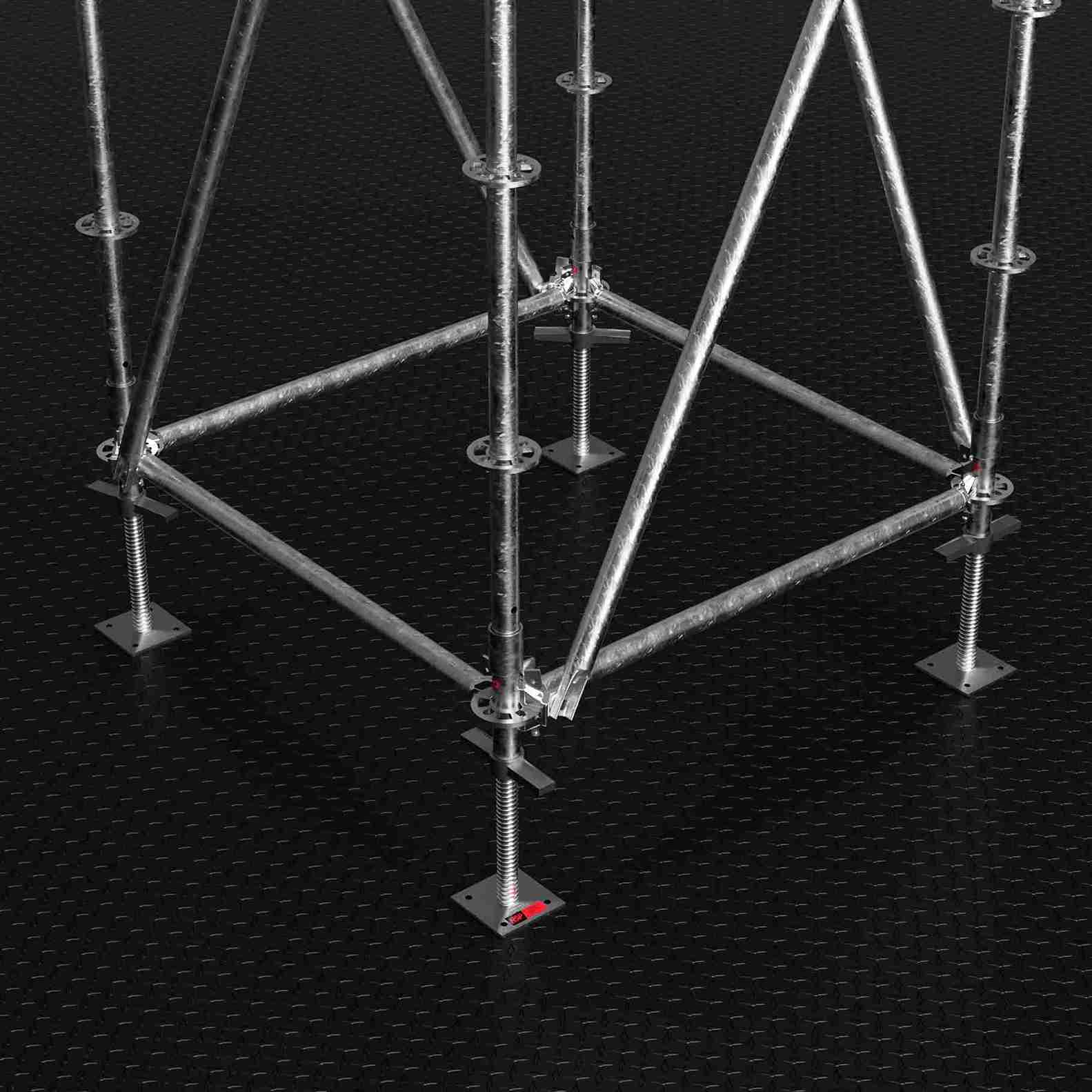 The Ø38mm Solid Screwjack is used as a starting piece for a Ring scaffold tower. It has an adjustable height to allow for versatility on uneven surfaces so that a level scaffold is always attainable. Ringlock Standards or  Base Collars are placed on top of the Screwjack to begin a scaffold tower. So