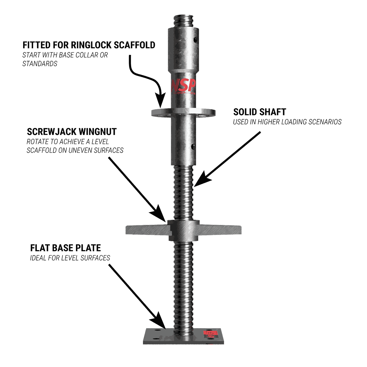 Solid Screwjacks are designed to be rigid components to withstand heavy loads created from scaffold towers.