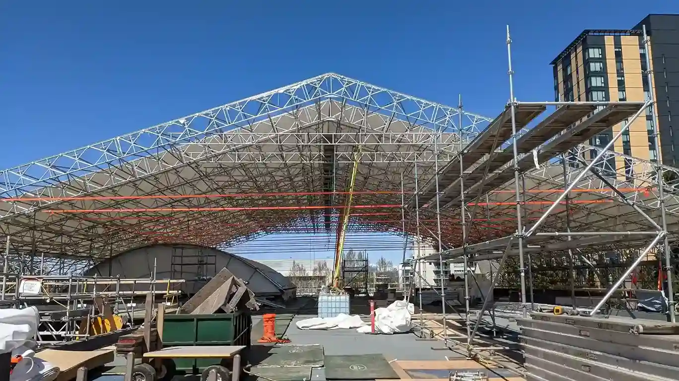 This project utilized North Scaffold products to construct a scaffold structure that protected Brock Hall at the University of British Columbia (UBC) during its renovation phase. The scaffold provided a secure and accessible platform for workers, ensuring their safety while facilitating efficient progress. North Scaffold’s reliable and durable materials were employed to erect a robust scaffold system tailored to the specific requirements of safeguarding Brock Hall. North’s Diamond Beam™ System was used to construct the temporary roof, the roll out method is a fast and efficient way to construct a roof of this magnitude, which can be seen in the video on this blog post. This project’s scaffold structure successfully facilitated seamless renovations, prioritizing safety and adhering to UBC’s standards, ultimately preserving and improving this esteemed educational facility.